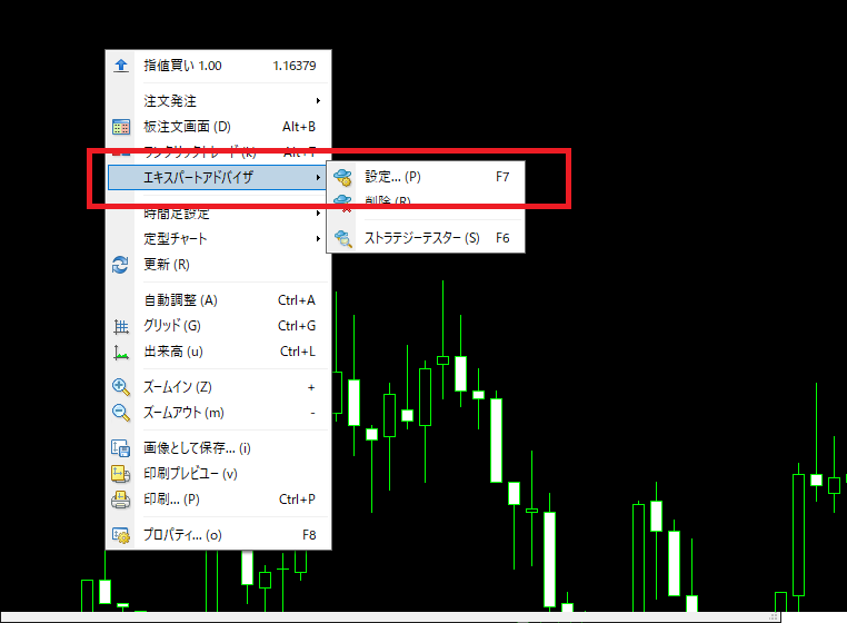 正しく導入できた場合、エキスパートアドバイザの設定が表示されます。